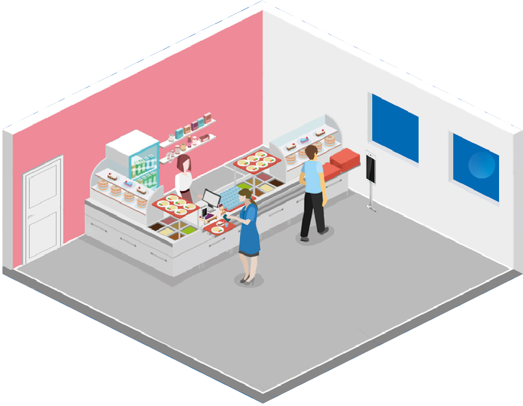 - Large-screen self-service checkout kiosks